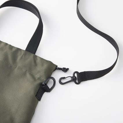 そのままの形でミニトート、ドローストリングコードを絞れば巾着バッグに